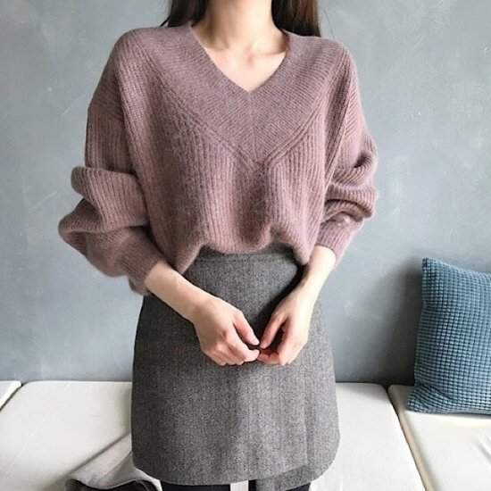 オルチャン韓国トレンド 冬 新作 Vネックニット ゆったり オーバーサイズ カジュアル