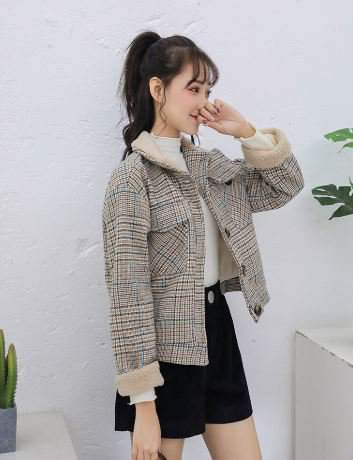 NW ウール ジャケット チェック柄 グレンチェック ショート丈 ボア フロントボタン カジュアル きれいめ