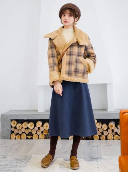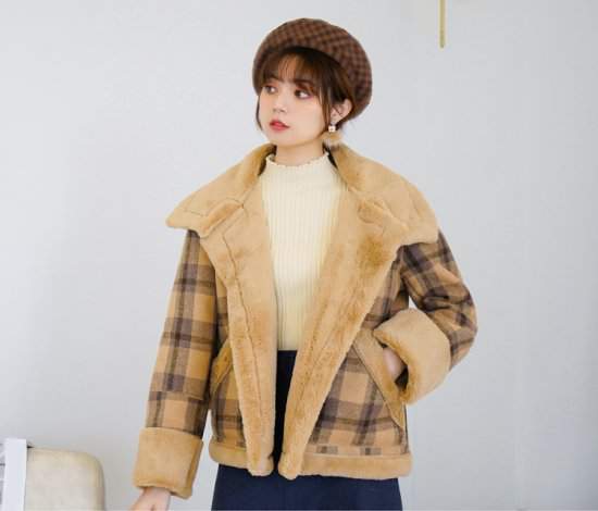 トレンド 冬 新作 ライダース ジャケットアウター チェック柄 ファー ショート丈 カジュアル 防寒
