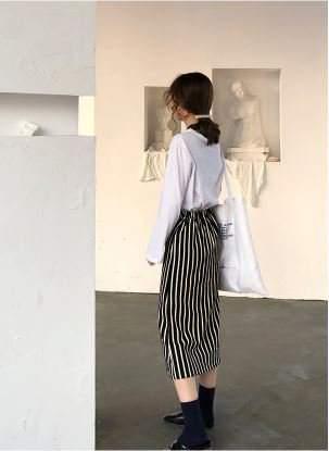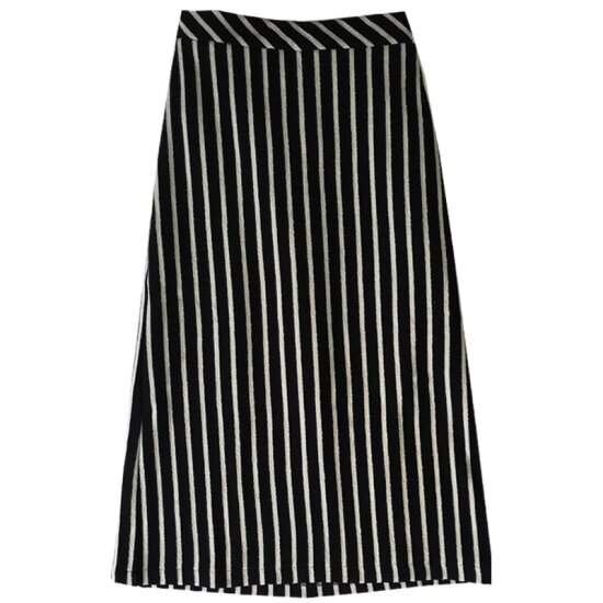 オススメ 新作 ロング ミモレ丈 ハイウェスト ストライプ Aラインスリム 細見え効果