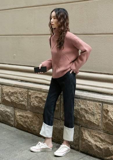 オルチャン韓国ゆったり着こなす ベイクドカラー ピンク アーガイルが可愛い♪ タートルネックニット