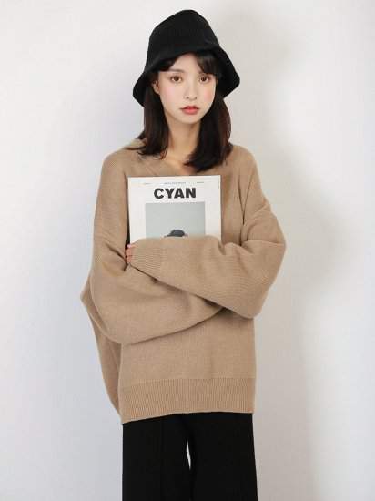 オルチャン韓国売れ筋 今季トレンド Vネック ニットプルオーバー オーバーサイズ ゆったり くすみ色 カジュアル シンプル