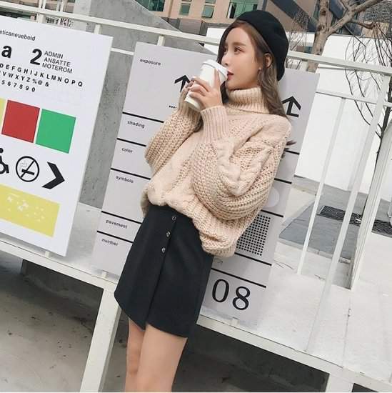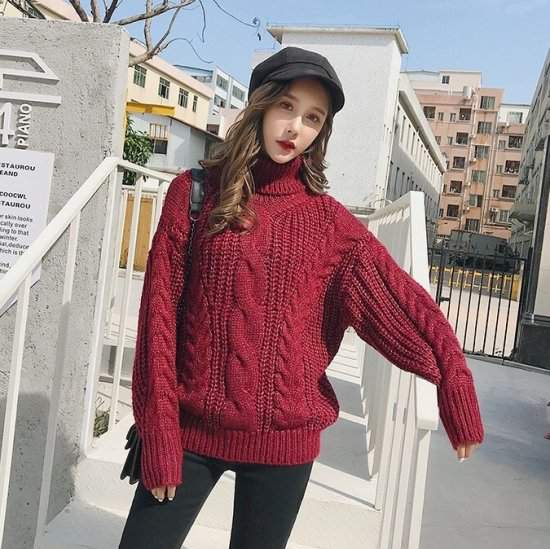 オルチャン韓国冬物 レデイース タートルネック ケーブル ニットカジュアル ゆったり キレイめ デート