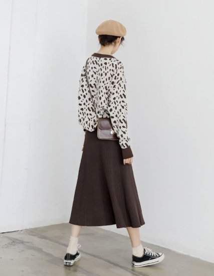オルチャン韓国冬 オススメ フレア ミモレ丈 リブニットシンプル トレンド ガーリーフレア
