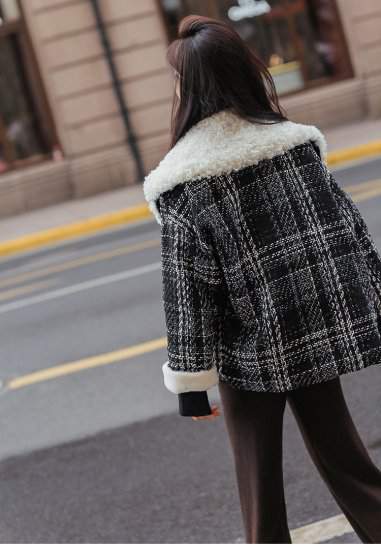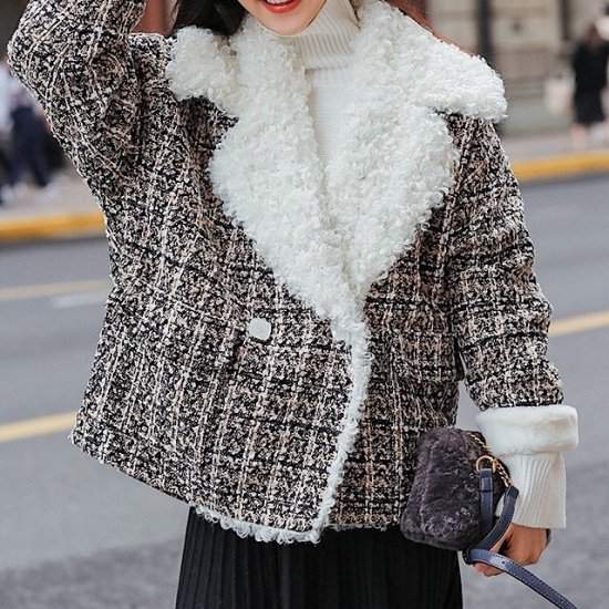 おすすめ 今季トレンド ショート丈 ジャケット チェック 格子柄 ボア ゆったり デート 通学 カジュアル