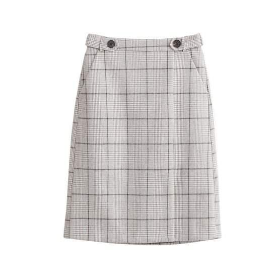 おすすめ 新作Aライン ミディ丈 グレンチェック ボトム ウエストボタン スリット ハイウエスト