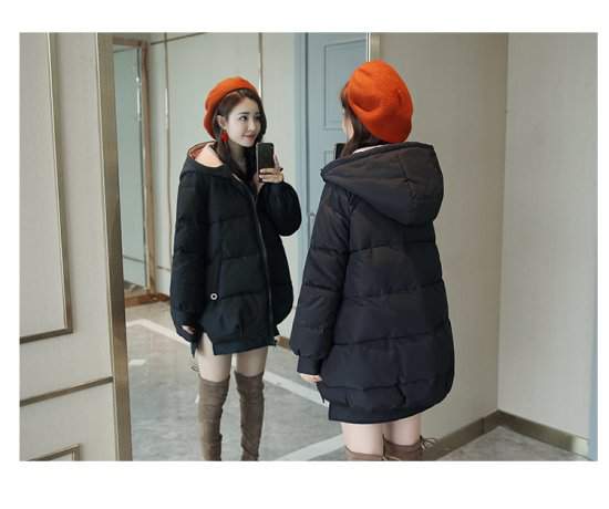 トレンド 売れ筋 冬物 中綿 ジャケット 厚手 暖か ミディアム丈 フード付き シンプル バルーンシルエット