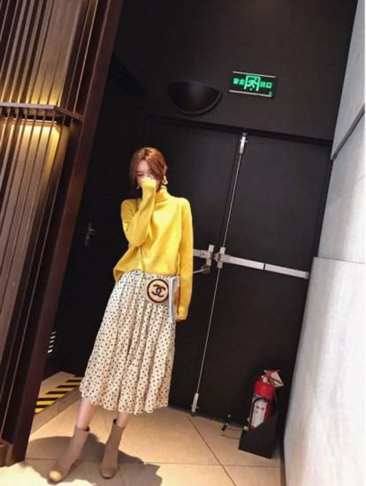 冬 オススメ 新作ハイウエスト ミディアム 水玉 キレイ Aライン 女子会 デート 通学 オフィス カジュアル