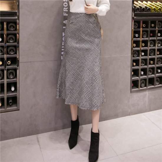 おすすめ 新作 春物チェック グレンチェック ハイウエスト ミモレ丈 マーメイド フリル きれいめ エレガント