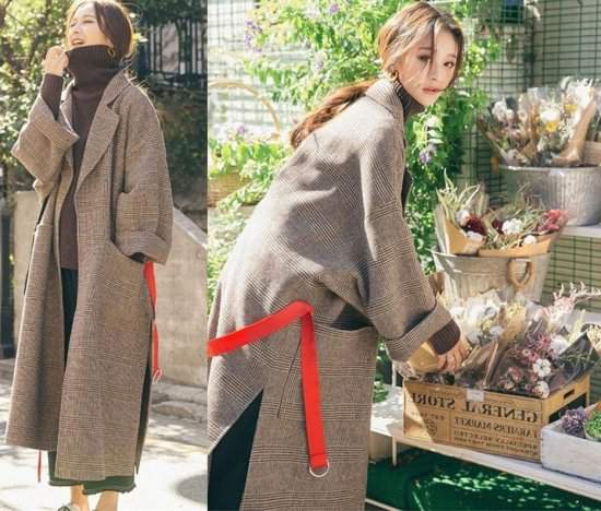 オルチャン韓国韓国 ゆるっと 軽め チェスターロング ラシャ ロング グレンチェック オーバーサイズ
