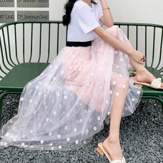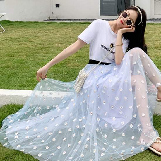 ロング ロング 長いマキシロング夏普通地 薄地フェミニン スカイブルー ピンク 花柄