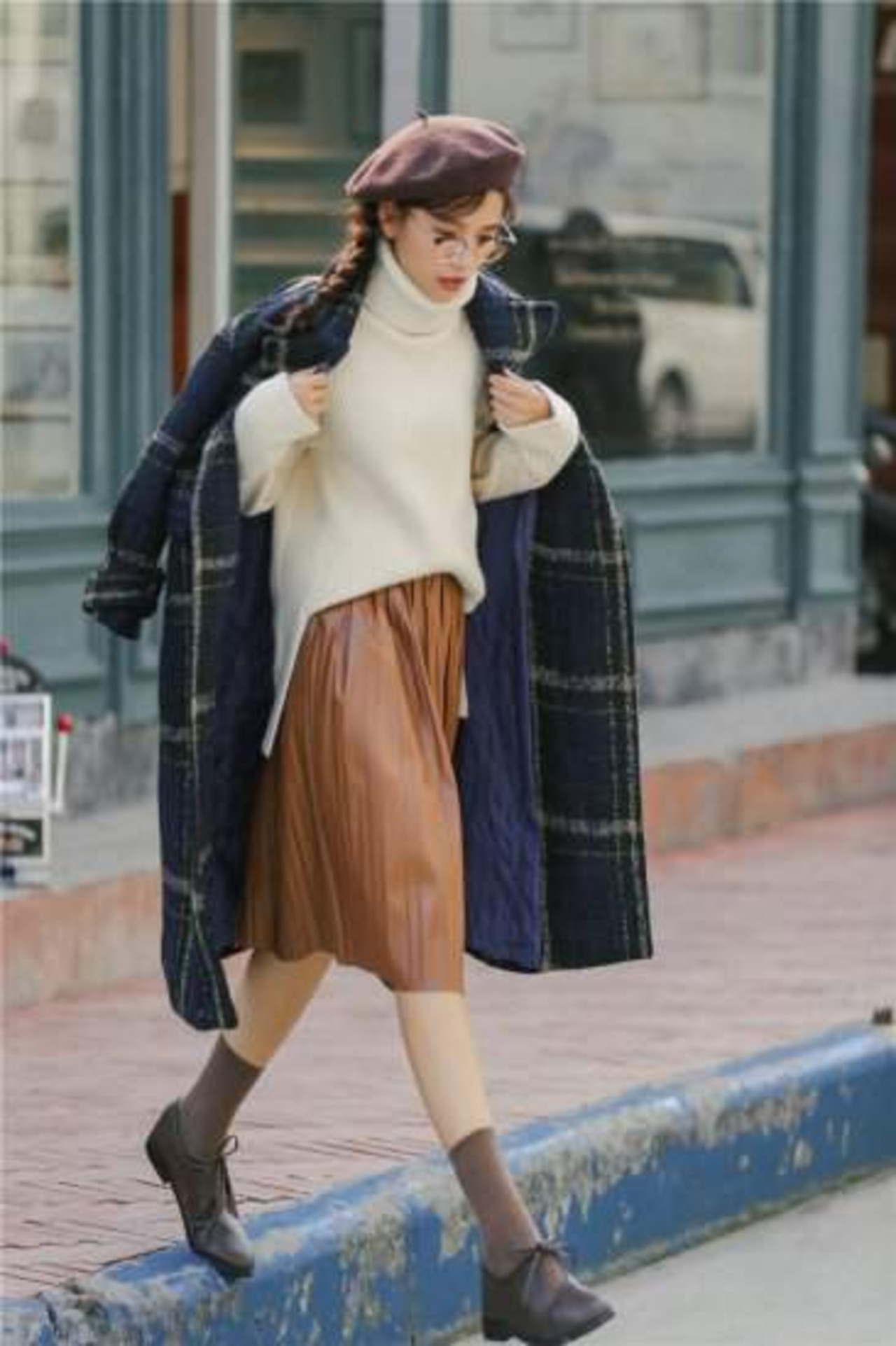 新作 売れ筋 冬 ロング ロング丈チェック柄 フェイクウール カジュアル トレンド ガーリー トラッド