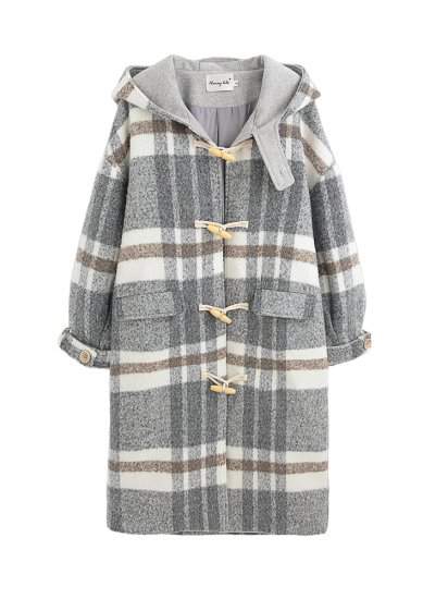 """おすすめ 冬 売れ筋 ダッフル ダッフル アウター チェック柄 フード ミディ丈 ロング ゆったり カジュアル トレンド"""