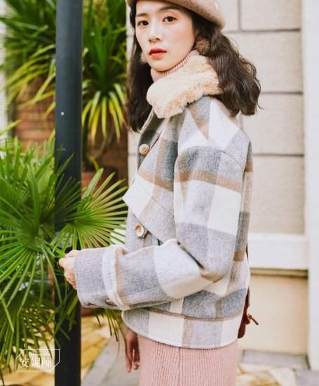 人気 秋冬アウター チェック柄 ファー エコファー ショート丈 フェイクウール ガーリー トレンド 可愛い 秋冬