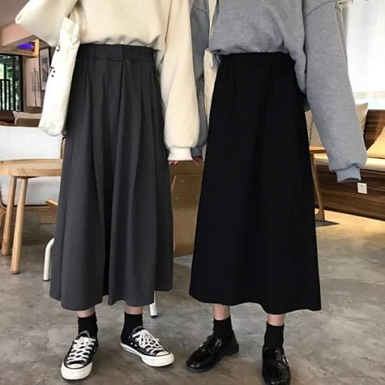 おすすめ 春物トレンド 人気 売れ筋ハイウエスト ロング シック学生 デート シンプル モノトーン