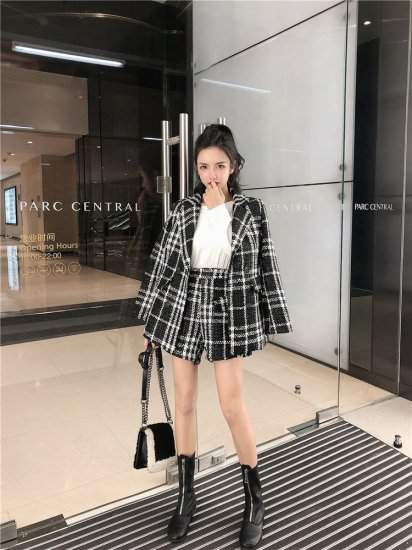 セットアップ 上下セット 春チェック柄 ジャケット ショート フォーマル 色 おしゃれ