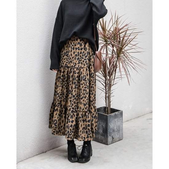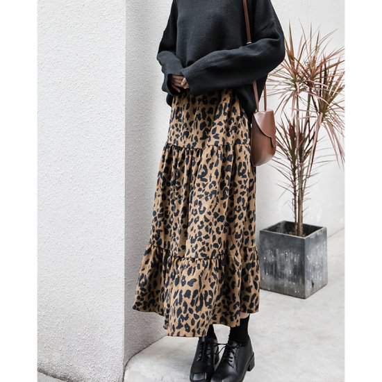 トレンド 売れ筋 春レオパード 柄物 ロング丈 キレイ 女子会 デート 通学 カジュアル