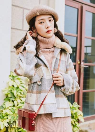 人気 秋冬アウター チェック柄 ファー エコファー ショート丈 フェイクウール ガーリー トレンド 可愛い 秋冬