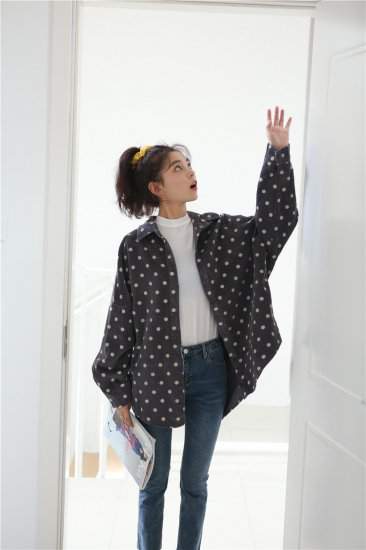 春物 ュロイジャケット ドット柄 オーバーサイズ ゆったり カジュアル