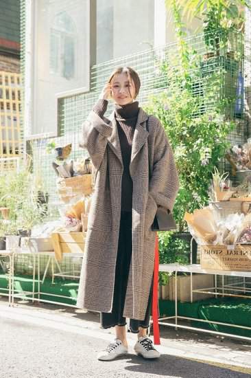 オルチャン韓国韓国 ゆるっと 軽め チェスターロング ラシャ ロング グレンチェック オーバーサイズ