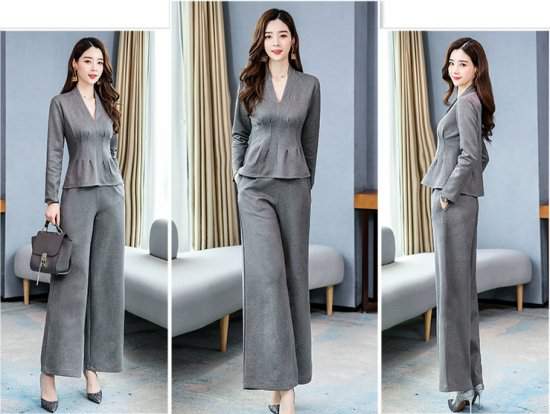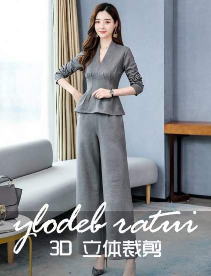 おしゃれ ブイネック ハイウエスト グリーン グレー ワイドレッグ お呼ばれ 2次会 結婚式