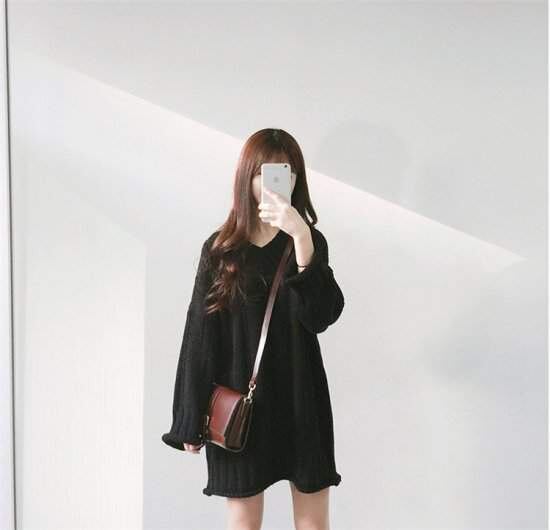 オルチャン韓国人気 秋冬 Vネック ニット ミニチュニックゆったり女子会デート 通学 カジュアル 537