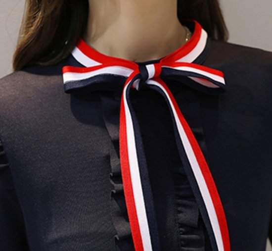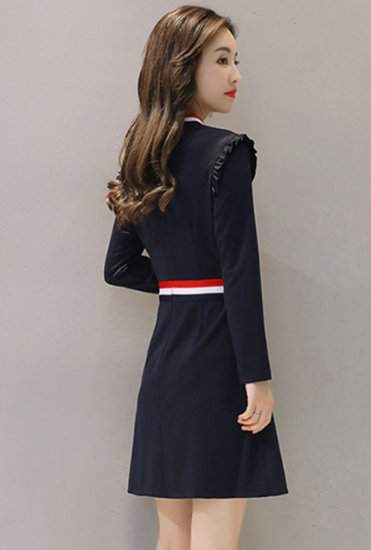 デティールAラインショート丈リボンタイストライプネイビー結婚式お呼ばれフリル 191