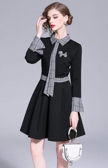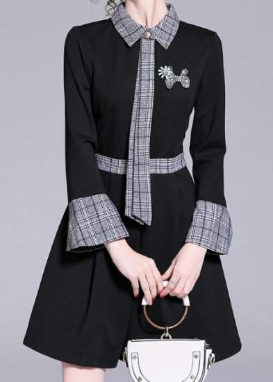 バイカラー襟ベルスリーブミニチェックシックAライン312