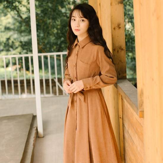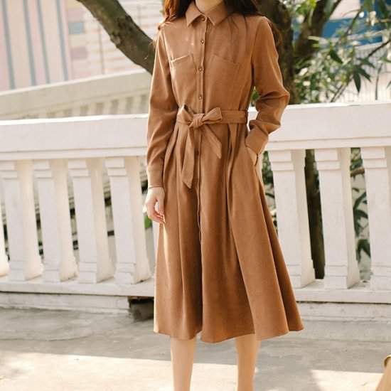 おすすめ 冬物ワンピ スエード ミモレ丈 フレアシンプル ガーリー354