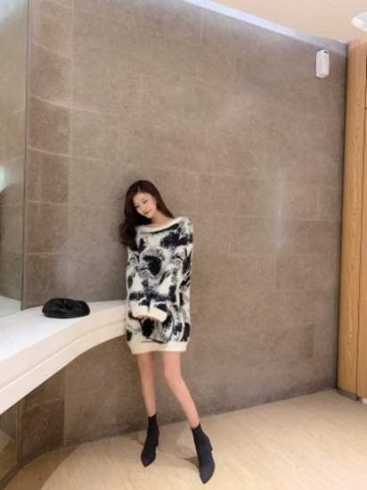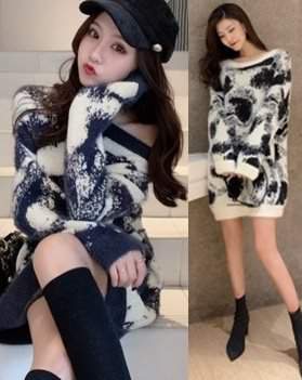 オルチャン韓国ニット 膝丈 アニマル柄 レオパード柄 ロング丈 通学 シンプル ルーズ 普段着 190