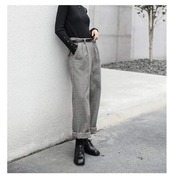 トレンド 冬 新作ロング ワイド チェック柄ガンクラブチェック トレンド カジュアル きれいめ ベーシック 美脚665