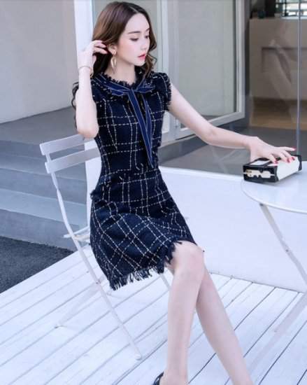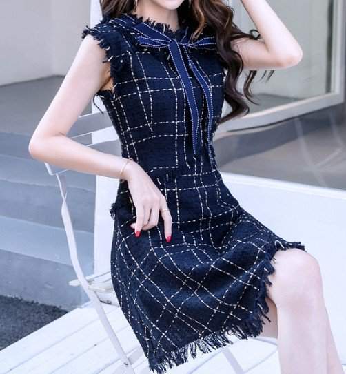 フリンジ きれいめ 膝丈チェック柄 リボン エレガント ミニ パーティー お呼ばれ フォーマル272
