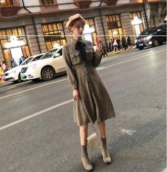 冬 人気お品チェック柄 スリム リボン膝丈 フレアフェミニン130