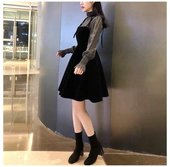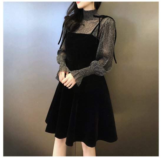 ドレスフレア ミニ丈 シースルー ボトルネック 袖コンシャス 上品 きれいめ 可愛い 960