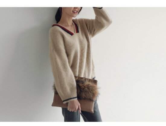 オルチャン韓国冬 トレンド ニットモヘア 両Vネック ライン ゆったりトレンド 上品 カジュアル720