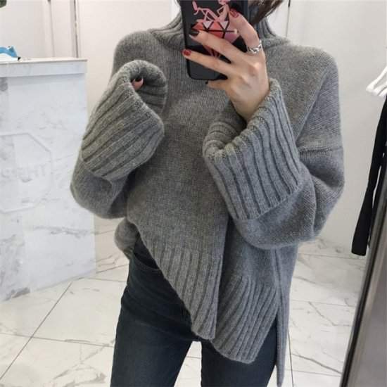オルチャン韓国NW 人気 売れ筋 ニットタートルネック リブ ワイドスリーブ ゆったり スリットシンプル434