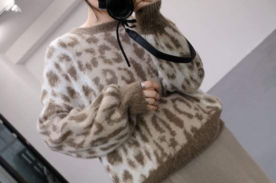 オルチャン韓国売れ筋 今季トレンド ニットプルオーバーレオパード ヒョウ柄 ラウンドネック 秋冬438