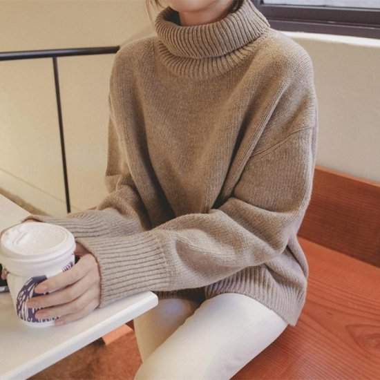 オルチャン韓国定番 人気 ニットタートルネック シンプル ゆったり ドロップショルダー400