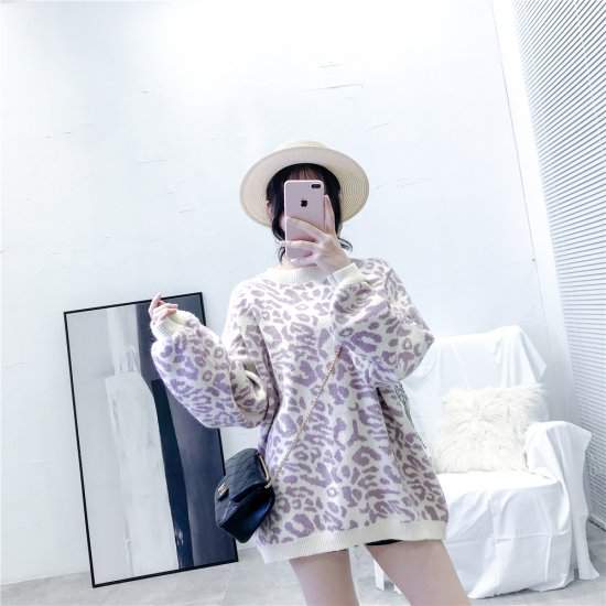 オルチャン韓国冬 オススメ ニットプルオーバー ヒョウ柄 レオパード柄 オーバーサイズ ゆったり ゆるニット ラウンドネック615