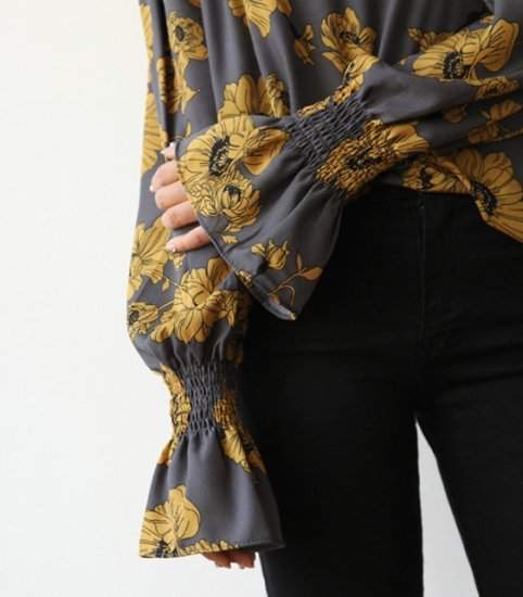 ハイネック花柄袖フリルベルスリーブレースアップボリューム袖77