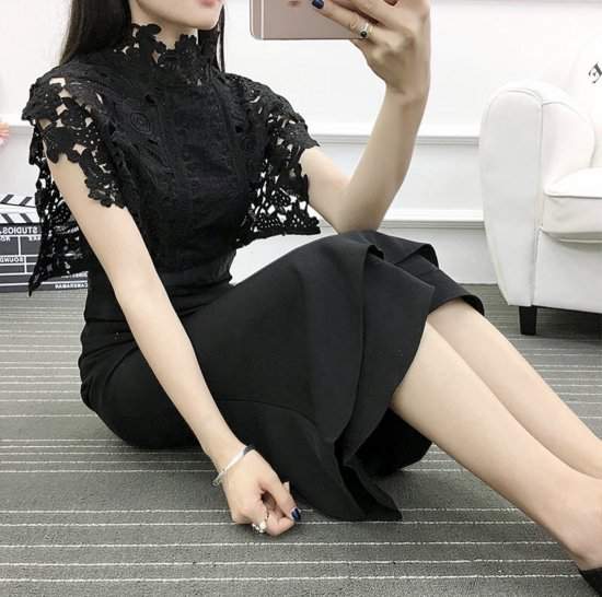 レース切り替えハイネック 女性ママ エレガント参観日 入学式 入園式に◎ 335