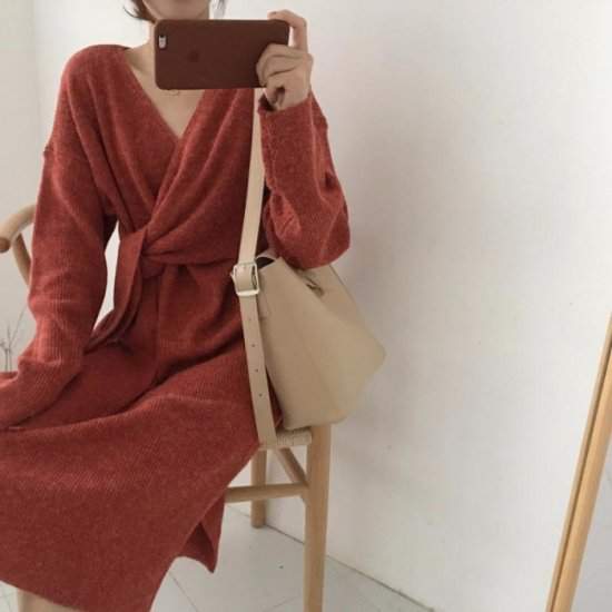 かわいい オルチャン韓国ニット ロング ニット カシュクールニットケーブル編み ニット ゆったり 397