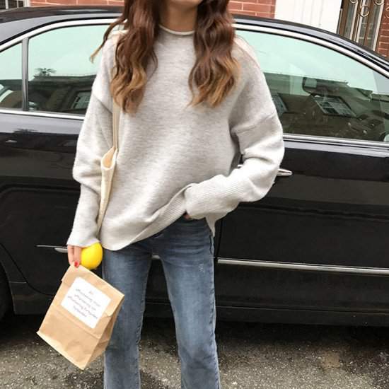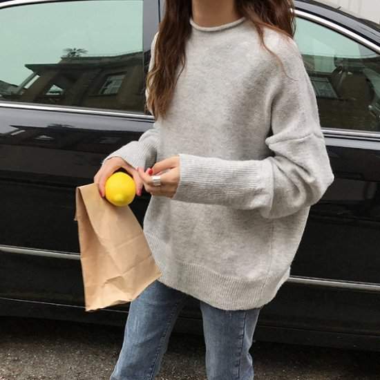 オルチャン韓国冬物 トレンド ニット シンプル ベーシック ハイネック クルーネック リブ ゆったり トレンド347