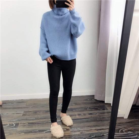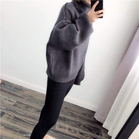 オルチャン韓国冬物売れ筋ニット タートルネックボリューム袖リブ ゆったりカジュアル 771