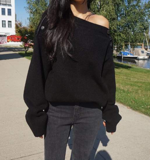 オルチャン韓国ニット ボートネック オフショルダー オフショル ゆったり オーバーサイズ オープンショルダー プルオーバー ボタン148