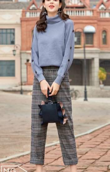 おすすめ 今季トレンド ストレート チェック柄 ハイウエスト アンクル丈 カジュアル ガーリー 通勤 女子会デート 150