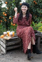 おすすめ 春物Vネック ひざ下 花柄キレイ女子会 デート カジュアル145