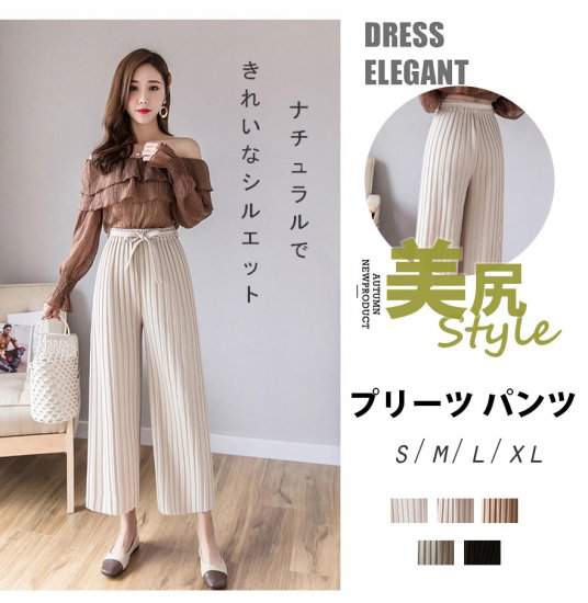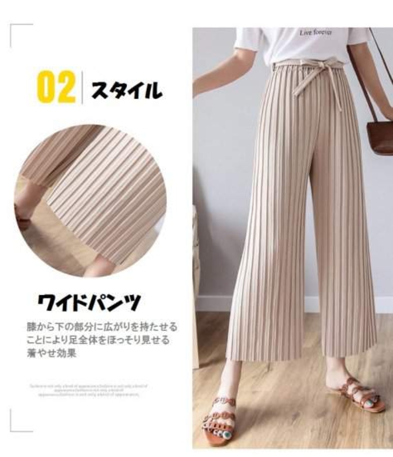 楽ちんズボン 楽なズボン 楽な 美脚ワイド 美脚プリーツ ワイド ニット美脚ガウチョ着回し 597