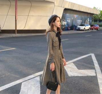 冬 人気お品チェック柄 スリム リボン膝丈 フレアフェミニン130