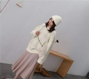 オルチャン韓国おすすめ 冬物 ニットUネック チェック こなれ感 女子会 デート 通学 シンプル ふわふわ キュート164